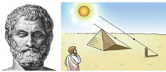 公元前6世纪,古希腊被尊为“科学之父”的泰勒斯,正站在吉萨高地巨大的胡夫金字塔前,思考如何测量胡夫金字塔的高度(图1)。(剩余1020字)