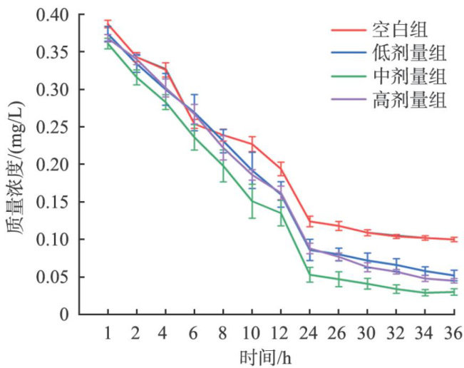 Abstract:Toaddresstheproblems of diseasesand mortalityinaquaticanimals caused byelevated nitritelevels inintensive aquaculture water,basedon thenitrite-reducing principle wherenitritereductase canspecificallyand ficiently degrade nitrite intonitrogen gas or ammonium salts,using the microecological preparationsproducing nitritereductaseas the composite regulator,amicroecological composite regulatorcontaining acomposite fermentation broth and anenzymebased stable mixture wasdeveloped.The degradation eficiencyand action pathwayof the microecological composite regulatoronnitrite wereevaluated bydetecting nitriteconcentration,determiningnitritereductaseactivity,andcounting the number of nitrite reductase-producing colonies.The results show that when the microecological composite regulator, prepared by mixing the composite fermentation broth and the enzyme-based stable mixture at a volume ratio of 3:1 ,is added to nitrite-containing water, it can significantly reduce the nitrite content in water within 36h ,increase the nitrite reductase activity by 61.67% ,and improve the survival rate of beneficial bacteria such as Lactobacillus plantarum in water by 4 times.