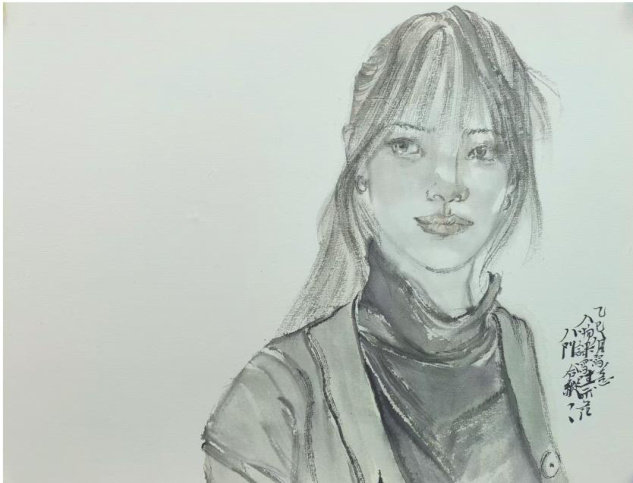 人物课程写生示范45cm × 68cm水墨