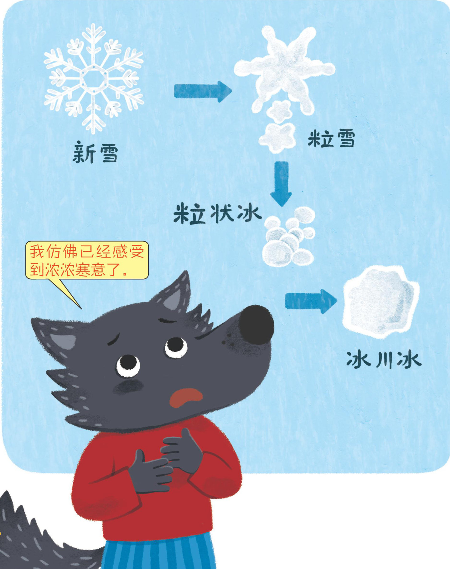冰川是由多年降雪累积而成的具有一定形状,并且运动着的冰体。从新雪到冰川的形成,需要漫长的过程。