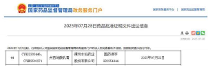 近日,水仙药业新产品夫西地酸乳膏获得国家药品监督管理局颁发药品注册批件,并视同通过一致性评价,预计于2025年10月投产并上市销售。