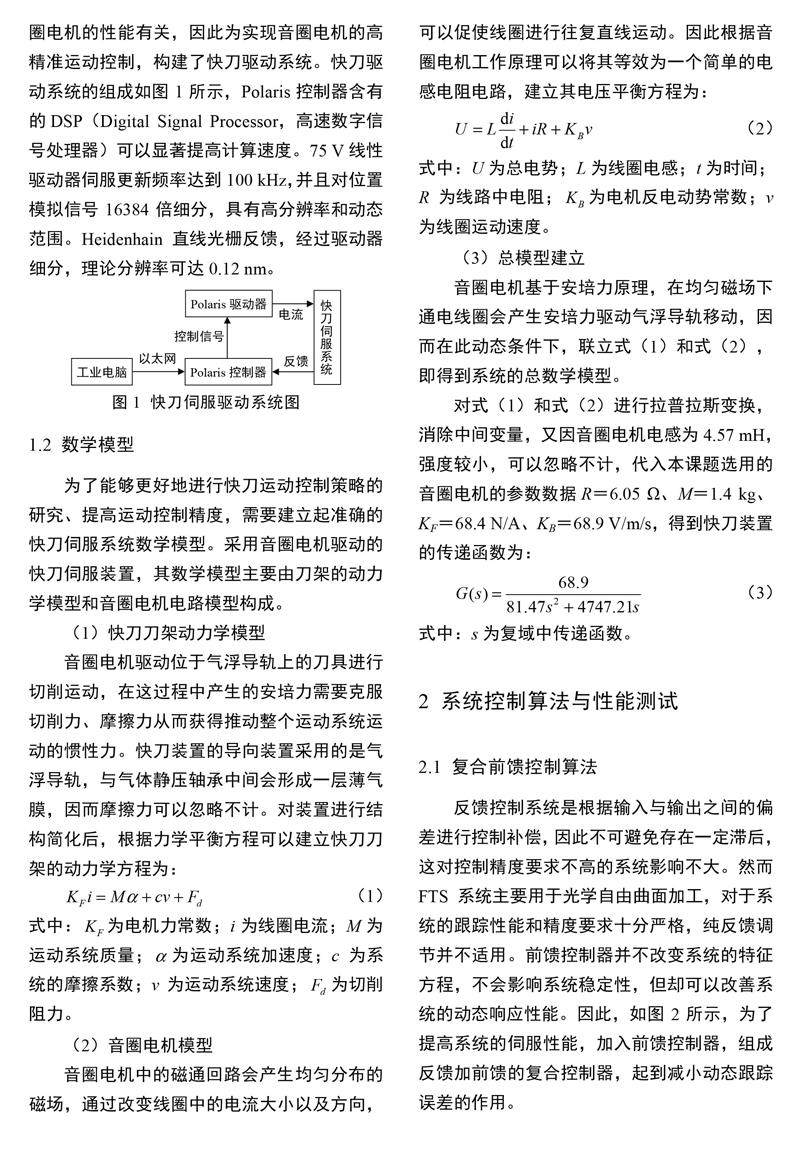 摘要:快刀伺服技术具有加工效率高、加工精度高、表面质量好等优点,被广泛运用于光学自由曲面加工。本文设计了音圈电机驱动的快刀伺服装置,建立了快刀伺服系统数学模型,构建加速度、速度复合前馈控制算法,进行了位置保持、阶跃、正弦跟踪的闭环性能测试,表明快刀伺服系统满足加工要求。基于快刀伺服系统控制器功能协调了刀具轨迹生成中快刀伺服装置运动和机床运动的同步关系,以离线计算加工方式实现快刀伺服技术。(剩余9947字)