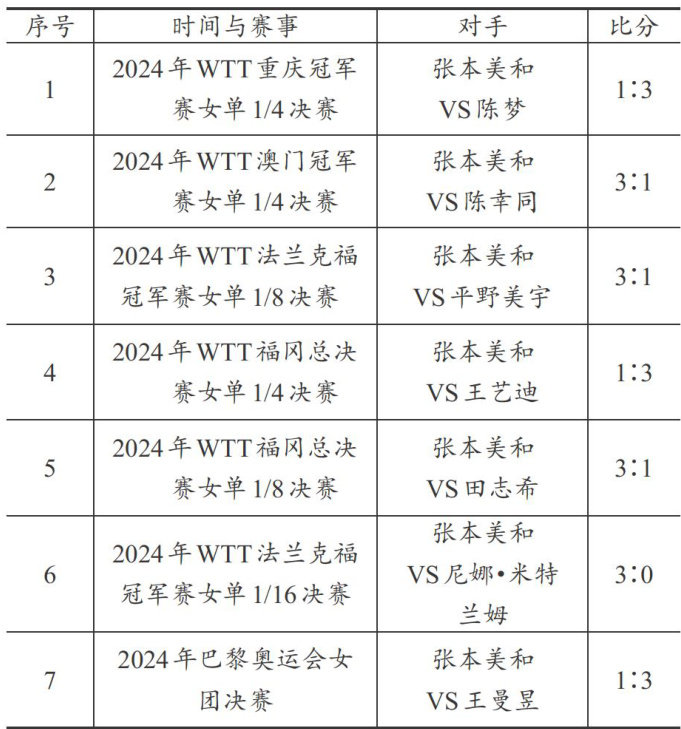 世界优秀女子乒乓球运动员张本美和技战术分析
