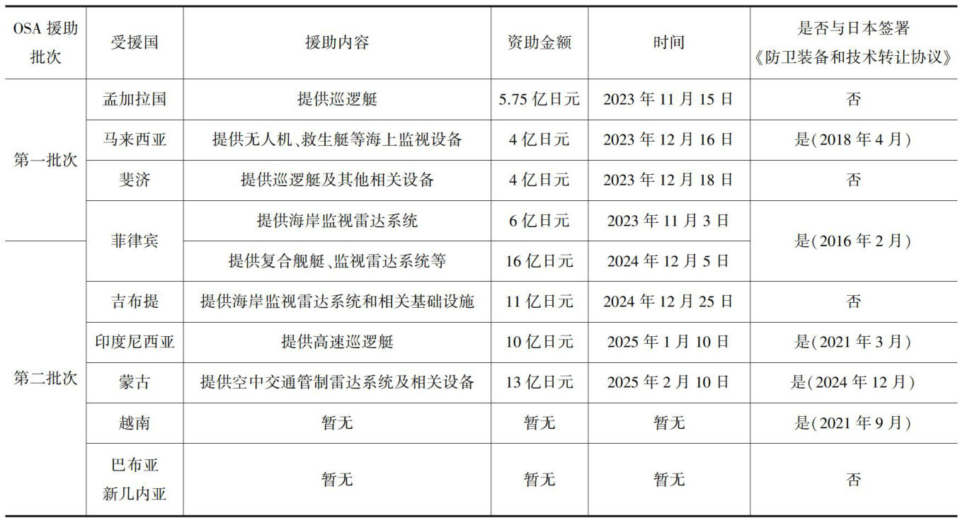 随着国际权力转移与亚太国际局势的演变,日本持续推进国家安全战略转型。2022年12月,日本修订《国家安全保障战略》,首次提出所谓“政府安全保障能力强化支援”(OfficialSecurityAssistance,以下简称OSA),即向“志同道合”国家和相关组织提供军事装备、物资以及军事基础设施建设援助。(剩余16576字)