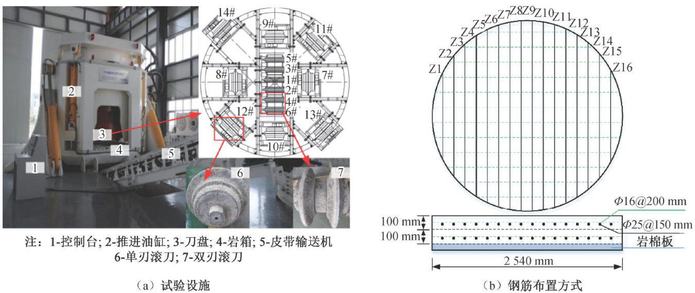 Abstract: Given the increasing number of cases where shield machines directly cut through reinforced concrete internal walls during urban tunnel construction,in-depth research on the failure mode of the internal wall during the cuting process and the load variation patern of the cutter head is crucial for optimizing the tool configuration and improving construction eficiency.Based on the indoor test of roller cutting through reinforced concrete internal walls,a three-dimensional dynamic numerical model of the shield cuttr head cutting through the reinforced concrete internal wall was established using ABAQUS. The simulation results show that the concrete mainly exhibits britle failure,and the failure mode of the steel bars is greatly influenced by the surrounding concrete constraints.By establishing a quantitative criterion for fracture stress ratio,statistical analysis reveals that the steel bars are partial cut-off,and the proportion of complete breakage decreases with the increase in diameter. The simulation data can basically reflect the average trend of the cutter head load change in the test,with the relative errors of thrust and torque being 7.36% and 9.21% respectively. High penetration depth will cause significant load oscillation,while low penetration depth can better exert the grinding effect of the roler.