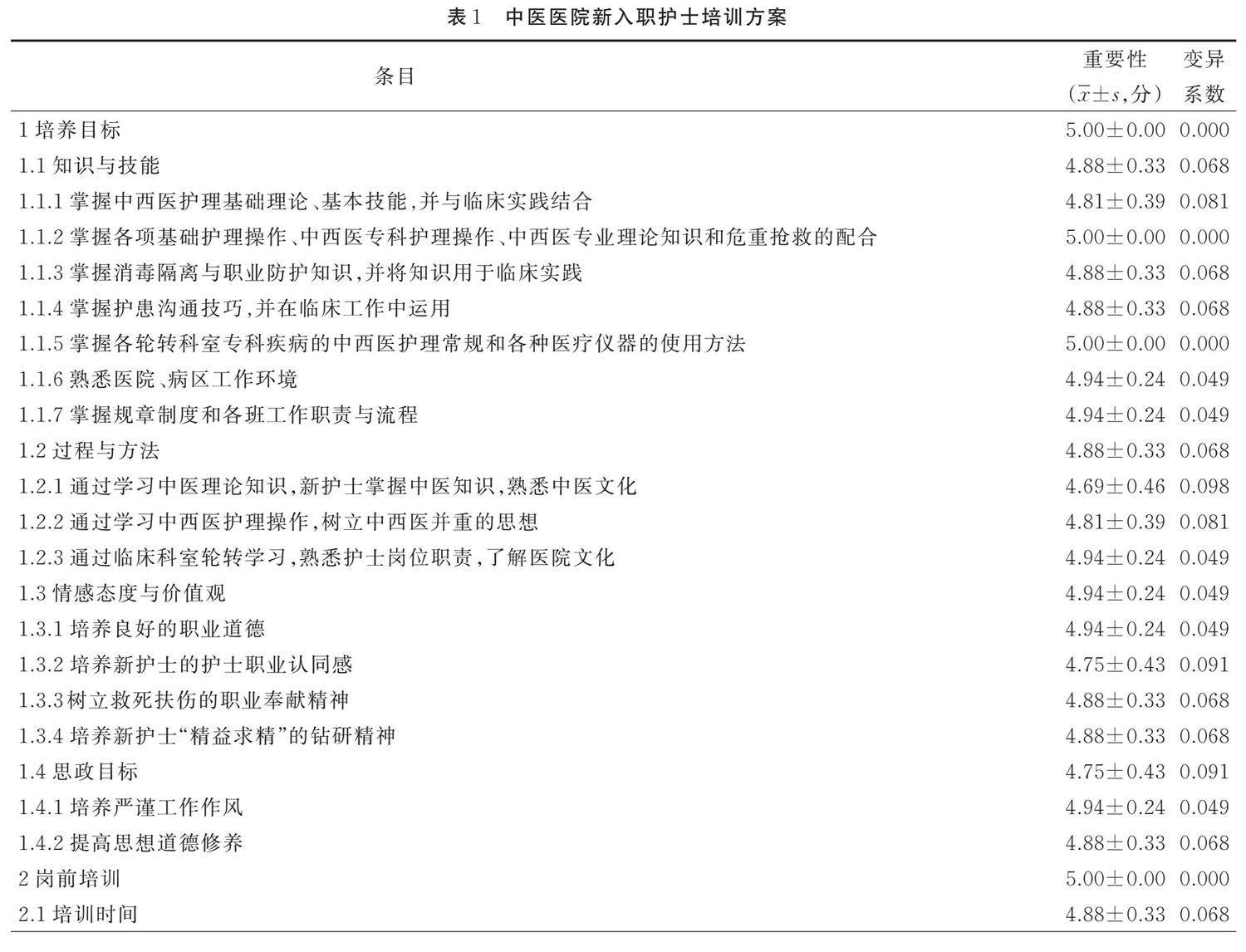Keywords new nurses; TCM nursing training program; Delphi method;nursing