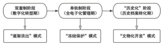 关键词:电子档案;纸质档案;双套制;单轨制;后纸质时代;单套制;数字化;数据化