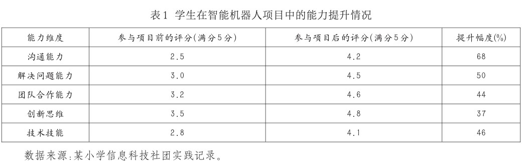 摘 要:在现代科技快速发展的背景下,智能机器人成为重要教育工具。文章以小学信息科技社团的智能机器人设计为研究对象,采用文献资料法、访谈法、实地调研法等,通过设计制作智能机器人,将科学理论付诸实践教学,旨在提升学生的动手能力与创造力。通过参与团队项目,以增强学生间的协作沟通能力,并培养问题解决能力,进而激发学生学习兴趣。(剩余4527字)