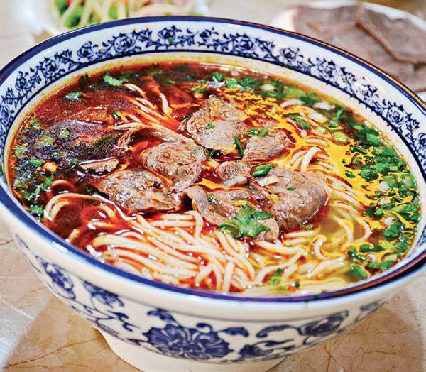 一碗清汤,一担细面,清汤伴着袅袅热气,与细面均匀地融为一体。做面师傅娴熟地放上卤香的牛肉块、撒上绿油油的葱花、香菜做点缀,并让辣油和香醋肆意流淌。原本清亮的汤水表面被渗入诱人的色彩,好似笔墨清爽的山水画中添加了色彩斑斓的点缀。普通瓷碗中,色香味契合的美味,引得人垂涎三尺。