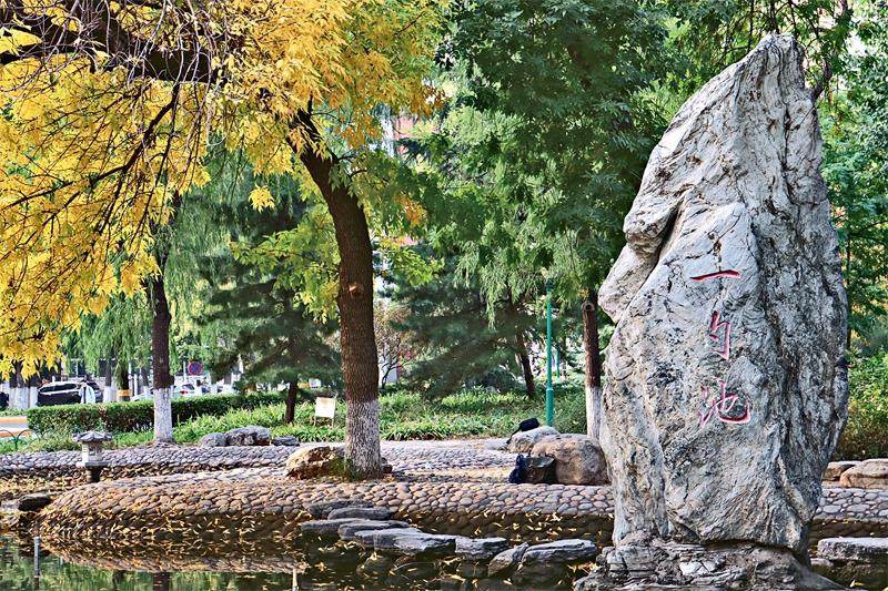 一勺池,池如其名,状如一把勺子,长约10米,宽约7米。它位于人大校园居中位置,是学校里唯一的水景。