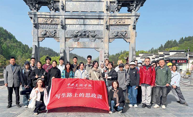 2025年4月12日至14日,中央美术学院马克思主义学院的铁锚、刘晓兰和韩笑三位老师走进安徽省黟县西递村,为版画系写生团队上了一堂别开生面的思政课。教师们从徽商精神谈到文化自信,从古村落保护延伸到乡村振兴——艺术与思政的融合,在皖南山水间悄然破题。