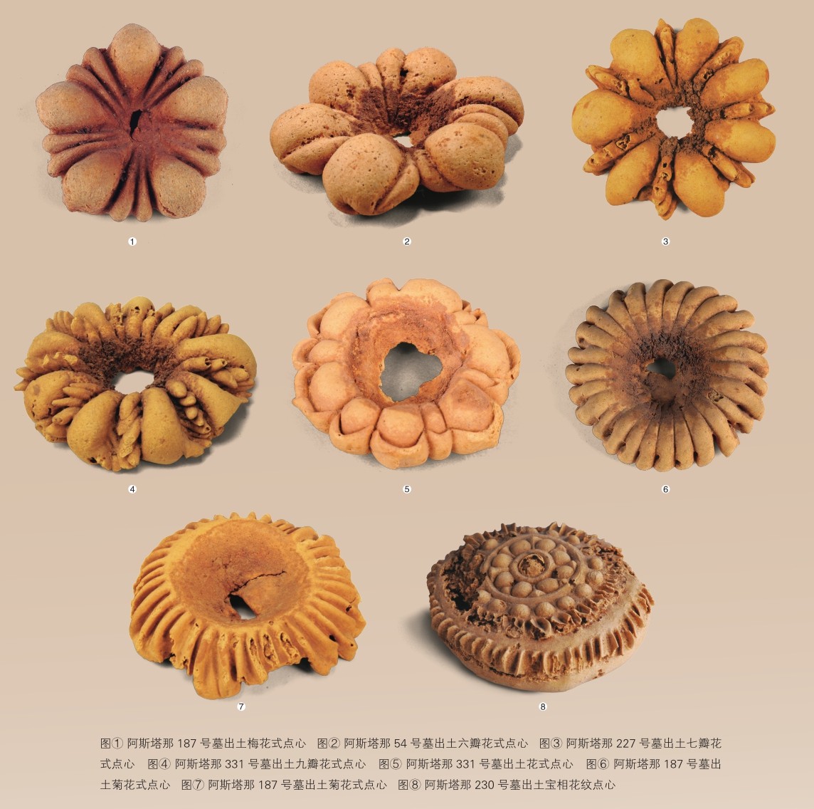 《现代汉语词典》中“点心”的解释有两种:一是动词,点饥,是方言词汇;一是名词,糕饼之类的食品。早在唐代,西域居民就开始制作和食用各种各样的点心类食品,吐鲁番阿斯塔那古墓群出土了大量各式点心。