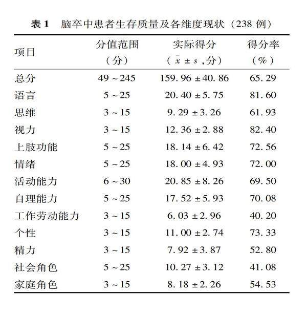 老年脑卒中患者生存质量与医学应对方式和自我效能的相关性研究