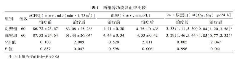 [摘要]目的观察沙库巴曲缬沙坦在老年糖尿病肾病(DN)患者中的有效性及安全性。方法选取2022年1~12月吉林市人民医院和吉林大学第二医院诊断为DN的120例患者进行回顾性分析,根据治疗方案,将患者分为对照组(使用缬沙坦)及观察组(使用沙库巴曲缬沙坦),各60例。比较两组的年龄、性别、收缩压、估算肾小球滤过率(eGFR)、24h尿蛋白、血钾、白细胞介素6(IL-6)、C反应蛋白(CRP)、左室射血分数(LVEF)及糖化血红蛋白等一般及临床资料。(剩余9834字)