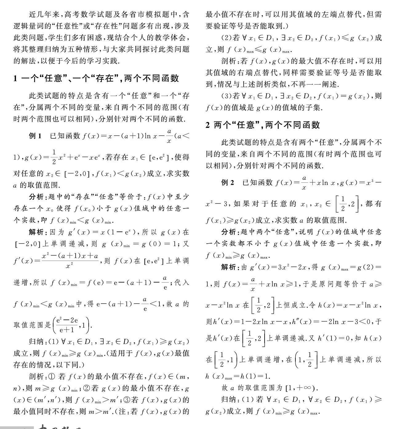 近几年来,高考数学试题及各省市模拟题中,含逻辑量词的“任意性”或“存在性”问题多有出现,涉及此类问题,学生们(剩余54字)