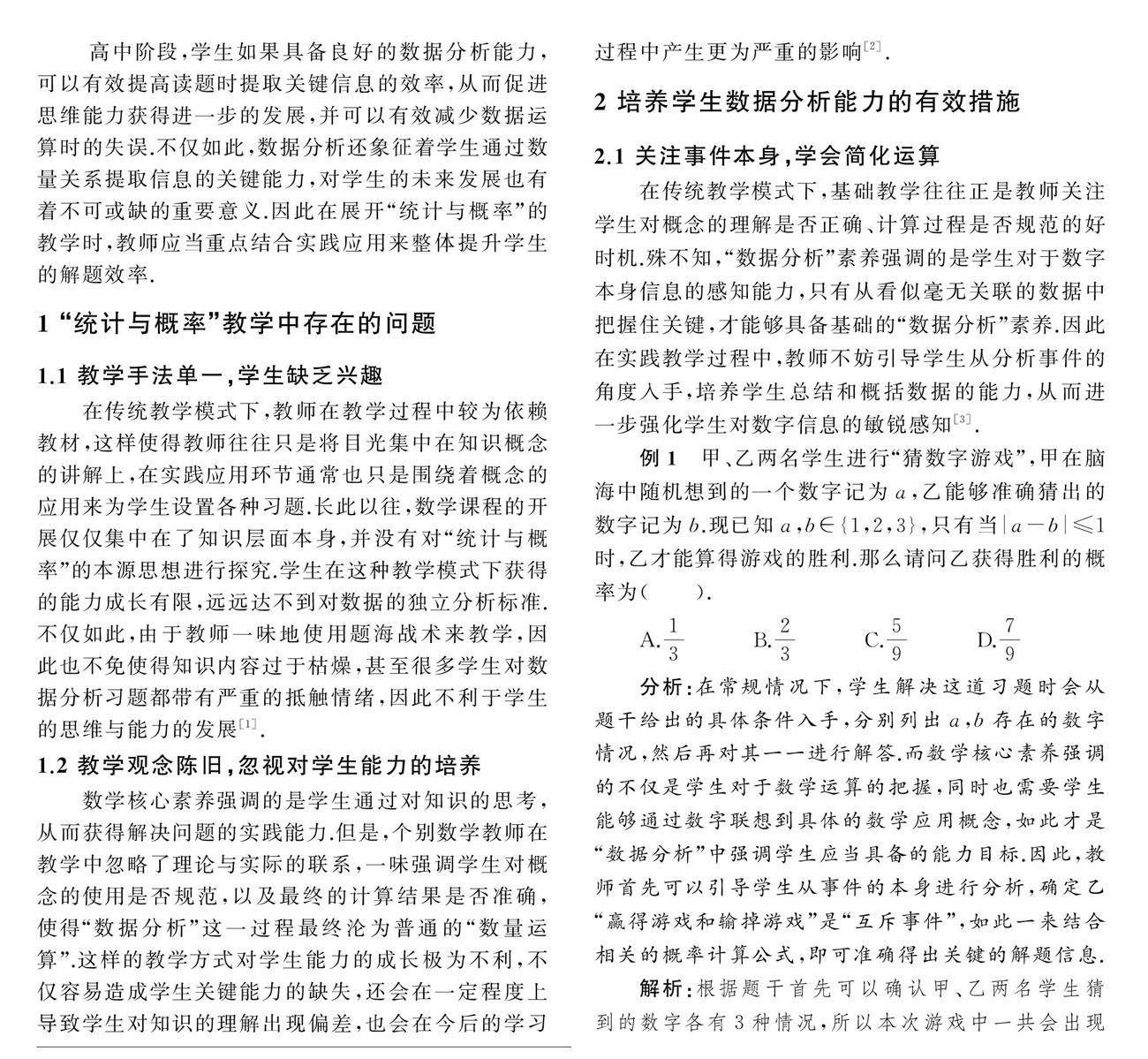 核心素养下高中数学数据分析能力的培养