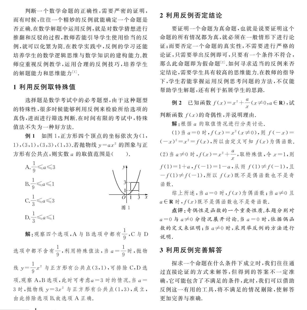 反例在中学数学解题中的应用