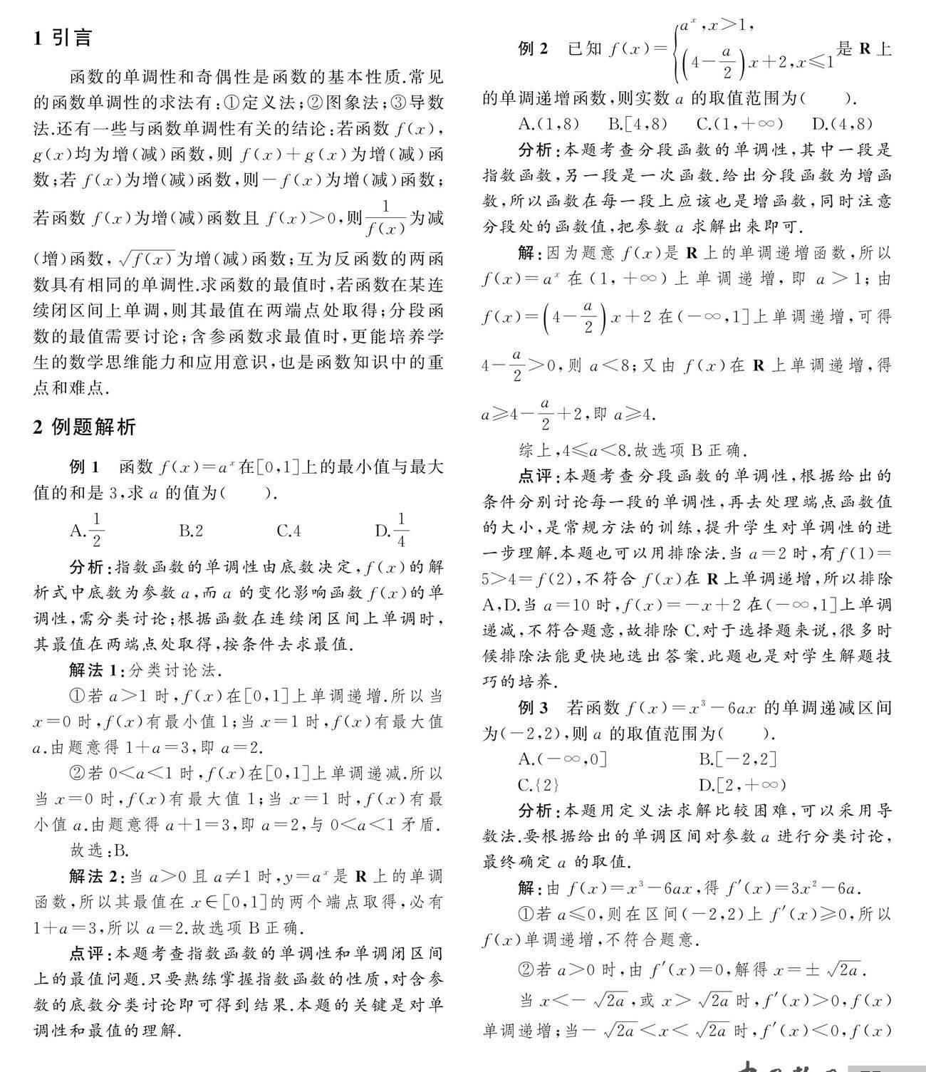 函数的单调性和奇偶性是函数的基本性质.常见的函数单调性的求法有:①定义法;②图象法;③导数法.还有一些与函数单调性有关的结论:若函数f(x),g(x)均为增(减)函数,则f(x)+g(x)为增(减)函数;若f(x)为增(减)函数,则-f(x)为增(减)函数;若函数f(x)为增(减)函数且f(剩余3685字)