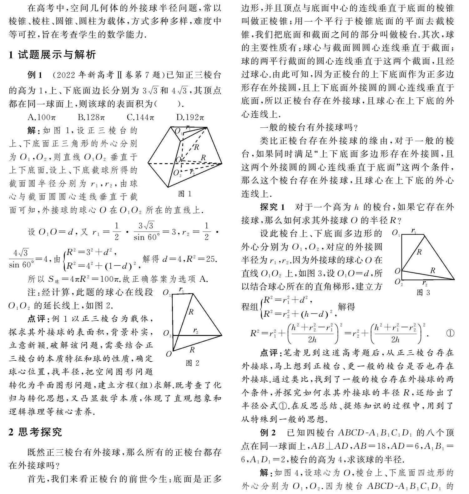 由正三棱台外接球引发的思考探究