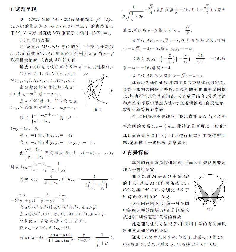 (2)设直线MD,ND与C的另一个交点分别为A,B,记直线MN,AB的倾斜角分别为α,β.当α-β(剩余3120字)