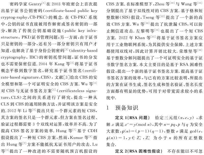 摘 要:为了提高基于证书签名方案的效率,利用RSA困难问题构造一个新的可证明安全的基于证书签名方案.方案使用RSA签名算法为用户生成证书,用户的私钥与该证书一起组成用户的签名密钥.在RSA困难假设下,所提出的方案能够抵抗恶意权威机构和非认证用户的攻击.所提出方案的所有算法都只需要计算开销较小的模乘和(剩余423字)