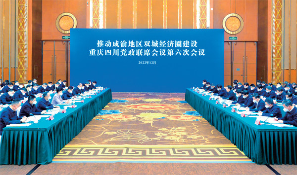 2022年12月30日,四川成都世纪城国际会议中心。热烈的气氛中,推动成渝地区双城经济圈建设重庆四川党政联席会议第六次会议如期召开,川渝两地党政代表再次齐聚一堂,共话成渝地区双城经济圈建设。
