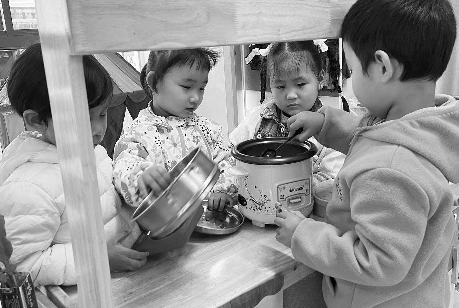 游戏时间到了,宣宣来到美工区,用超轻黏土玩了起来。不一会儿,他便搓出很多圆球放在纸盘上。睿睿走了过来,宣宣问:“要不要吃我做的小圆子?”睿睿听完,说:“好啊,给我吃吧!”“等等,你要付钱才能给你。”睿睿停顿了一下,伸出手来对宣宣说:“给你钱。”于是,宣宣把盘子端给了睿睿:“来吃吧!”
