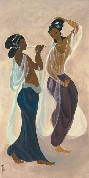 林风眠 《敦煌乐伎》镜框,2022年佳士得,1845万港元成交,张宗宪旧藏