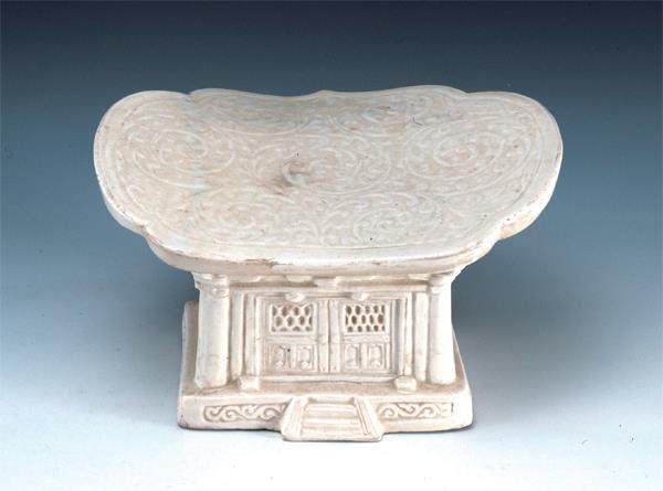 白釉镂雕殿宇人物枕,五代十国~北宋 上海博物馆藏
