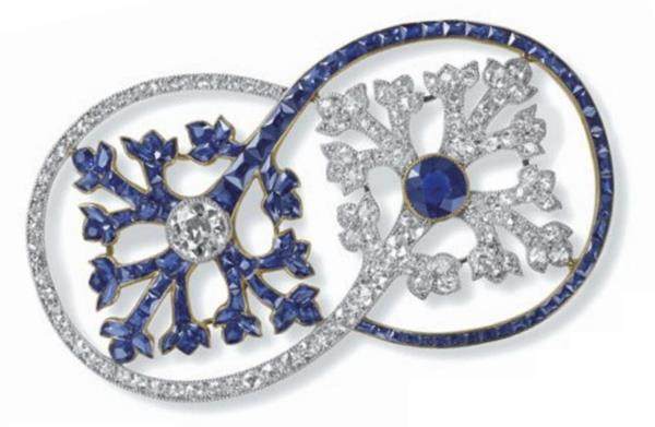 卡地亚胸针,黄金、白金、钻石和蓝宝石