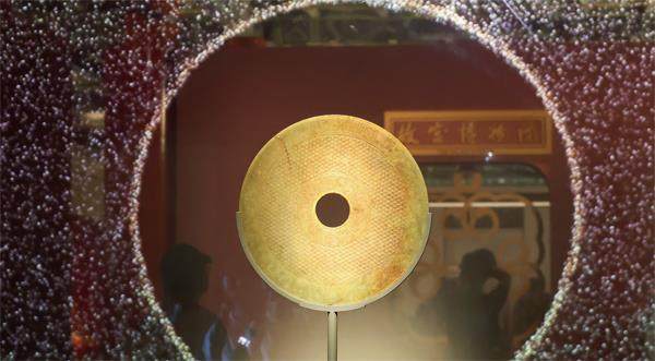2025年10月14日,北京,故宫“百年守护——从紫禁城到故宫博物院”展览展出的精品文物:青玉兽面纹璧。图/ 视觉中国