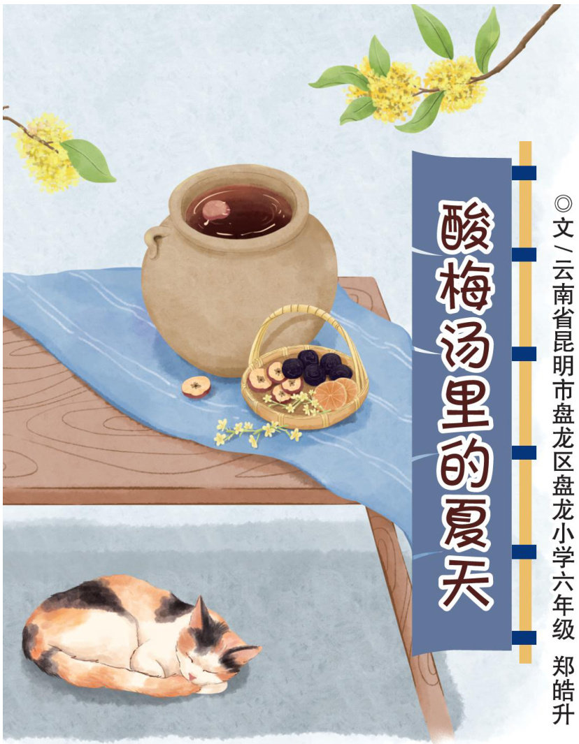 古语有云:春饮新茶夏尝冰,秋酿菊 酒冬暖樽。春去夏来,天气渐渐炎热,当第 一声蝉鸣响起时,我总会想起奶奶熬的酸 梅汤。