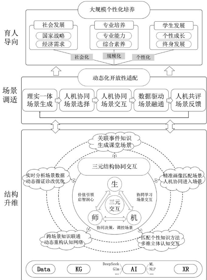 随着大语言模型、智能体(Agent)的深化应用,社会交互已从“人一人"转向“人—机器—人"的智能中介范式,人机共生、人机共育成为时代发展的必然。课堂这一育人主阵地,其教学活动结构也正从“师一生”二元向“师一生一机"三元转变,为实现人工智能驱动的大规模个性化教学提供切入点。(剩余15210字)