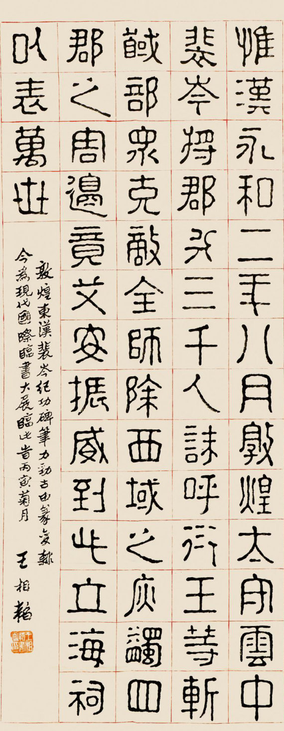 王相韬,字宗宪,祖籍河南安阳,后移居。王氏生于1918年,其时烽烟四起,山河待新。祖父为前清秀才,诗书传家。王相韬少秉庭训,早嗜墨翰,及长,以篆隶名世,亦工行草。篆隶工稳,行草狂放,世人或识其笔墨变幻,或叹其性情莫测,盖书如其人,信非虚言。