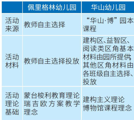 通对南机关事务管)区华幼儿园山幼儿园和美动林幼件、园所要求、区角设置、活动开展频次、教师指导策略等展开比较,讨论和分析了差异及其原因。