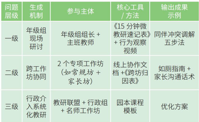 幼小衔接是幼儿园教育的重要环节,其核心在于通过身心、生活、社会、学习四大准备帮助幼儿实现从幼儿园到小学的平稳过渡。针对传统教研模式存在的响应滞后、策略碎片化等问题,本研究以某幼儿园即时性教研实践为依托,结合案例分析、数据统计与理论框架,构建“教研联盟 + 名师工作坊”双轨协同机制,形成“问题采集一分级响应一策略生成一闭环追踪”的教研闭环,助力教师专业能力提升、家园共育优化及幼儿适应能力增强。(剩余3139字)
