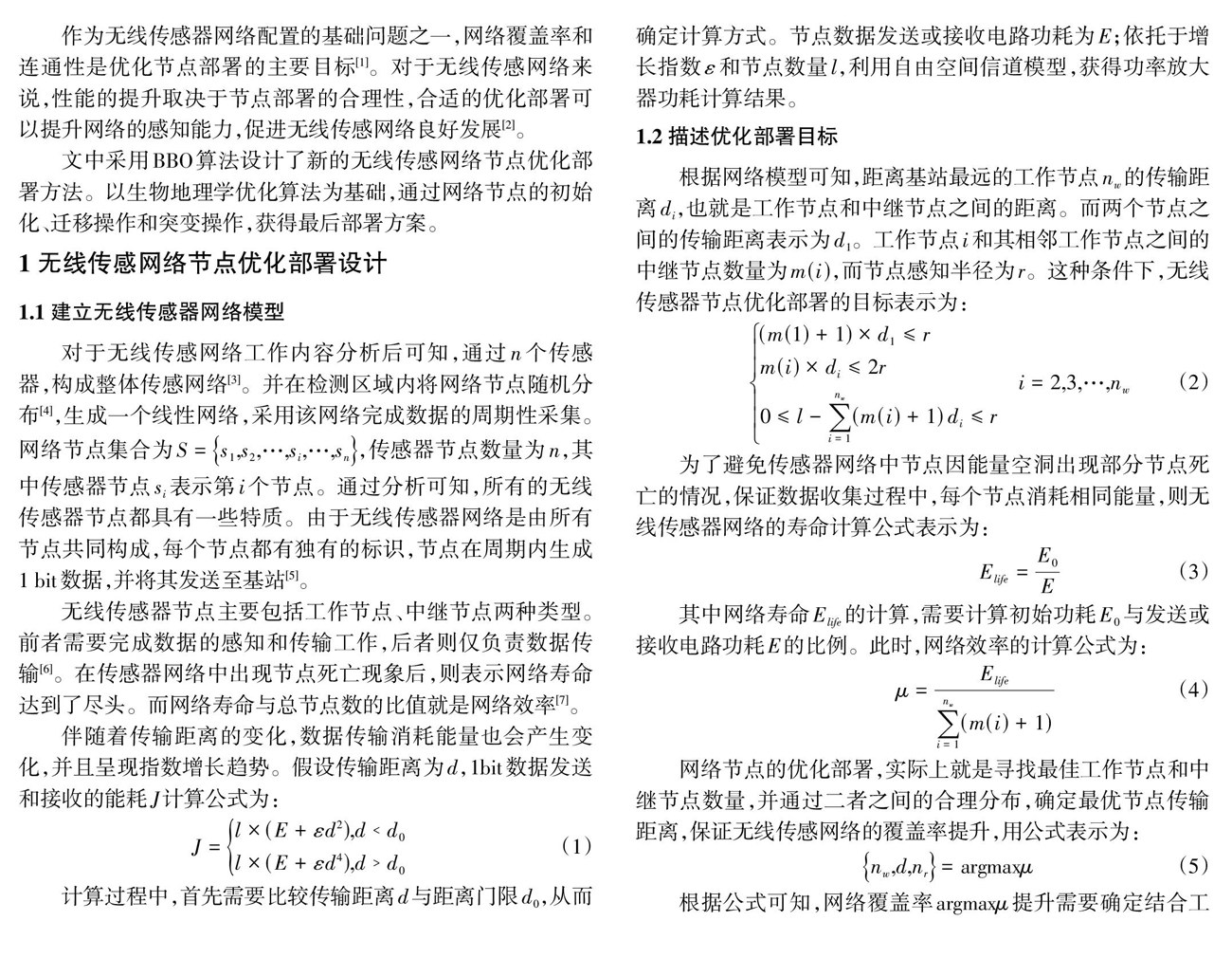 摘要:在无线传感网络节点部署时,由于优化算法的差异,使得优化部署后网络覆盖率依旧较低,提出基于BBO算法的无线传感网络节点优化部署研究。基于无线传感器网络结构,生成线性网络,采用该网络完成数据的周期性采集,寻找最佳工作节点和中继节点数量,并通过二者之间的合理分布,确定最优节点传输距离。依托于BBO算法设计节点布局方案,计算网络覆盖率,实现网络节点优化部署。(剩余4306字)