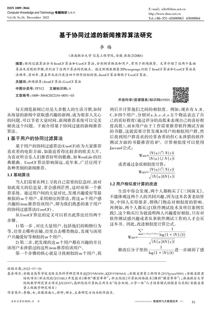摘要:协同过滤算法分为ItemCF算法和UserCF算法,分别侧重物品和用户,常用于新闻推荐。文章介绍了这两个基础算法及实现的步骤,并列出了这两个算法的优缺点。通过新闻数据集20Newsgroups比较了ItemCF算法和UserCF算法在准确率、召回率、覆盖率及流行度这四个评价指标的值,ItemCF算法都低于UserCF算法。(剩余5015字)
