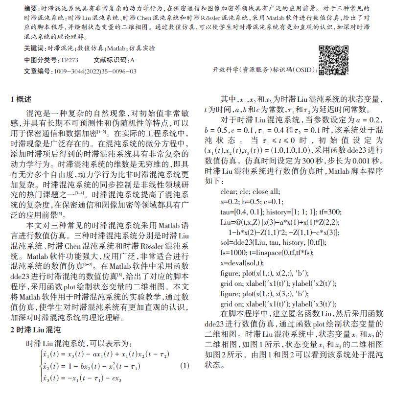 Matlab软件在时滞混沌系统仿真实验中的应用