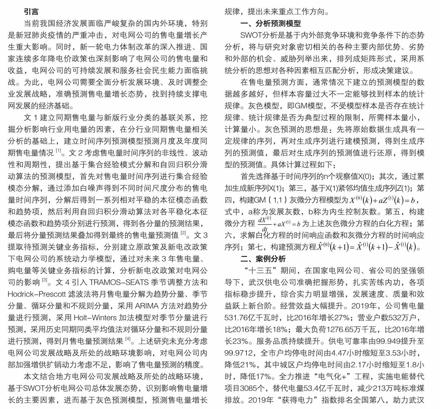 基于SWOT的武汉供电公司发展态势及售电量预测
