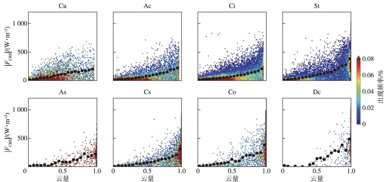 摘要地表的云短波辐射效应(shortwavecloudradiativeeffect, FCRE )在气候变化中扮演关键角色,但在不同的云种类下具有很大的不确定性且其主控因子不明。本文利用美国南部大平原中心站14年 15min 分辨率的云种类和同期地表短波辐照度等观测资料,分析了8种云(淡积云Cu、层云St、高积云Ac、高层云As、卷层云Cs、卷云Ci、浓积云Co、深对流云Dc)的 FCRE 特征及其影响因素,引入云相对辐射效应(relative FCRE ,FRCRE )参量,结合XGBoOst及SHAP模型揭示了不同云种类下两种云辐射效应指标的差异及主控因子,并评估了二者的不确定性。(剩余23731字)