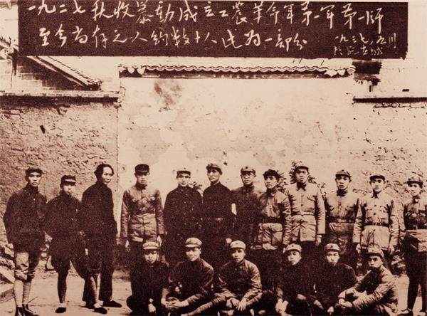 1937年5月9日,毛泽东在延安和当年参加秋收起义的部分同志合影