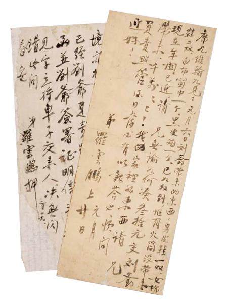 这两封书信是甘肃省博物馆馆藏一级文物,为时任中共甘肃工委副书记罗云鹏在狱中写给房东席维翰的书信。二函均为纸质,以墨笔书写。一纵22.8厘米,横13.2厘米;另一纵25.7厘米,横10.2厘米,均未署年款。一署“元月廿日”,另一署“二月十九日”。