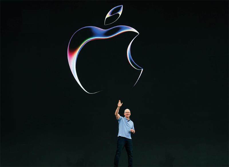 2023年6月,苹果公司首席执行官蒂姆·库克在位于加利福尼亚州库比蒂诺的公司总部举行的苹果全球开发者大会上。(摄影/Jim Wilson)