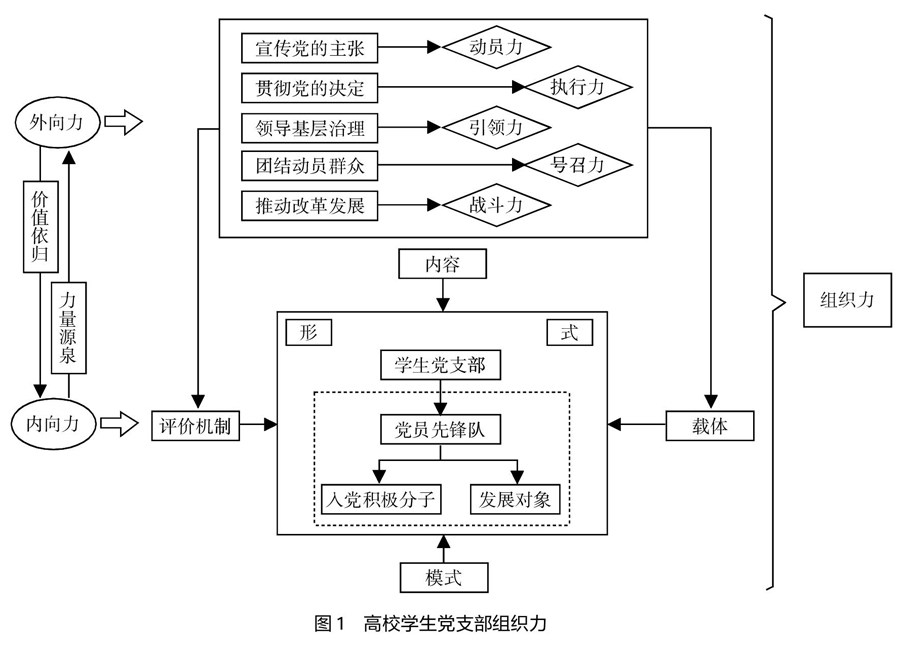 摘 要:文章将高校学生党支部的组织力分为内向力和外向力两种表现形式,通过明确组织力的外向力方向,优化组织力内向力要素结构,深入研究组织力内外向度的逻辑性和系统性,形成组织力提升机制,从而为科学构建高校学生党支部组织力寻找对策。