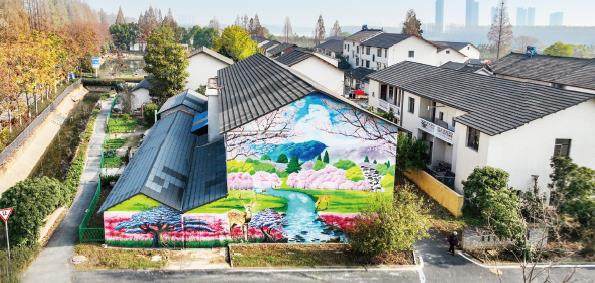 村居外墙绘就的花海中,灵动可爱的梅花鹿似乎要越墙而出,跑到一旁的生态鹿园里玩耍;村口的亲子菜园里,形态各异的稻草人已经“上岗”,守护着孩子们精心栽培的蔬菜;粉壁黛瓦的村湾,各色园林雕塑、凉亭点缀其间……