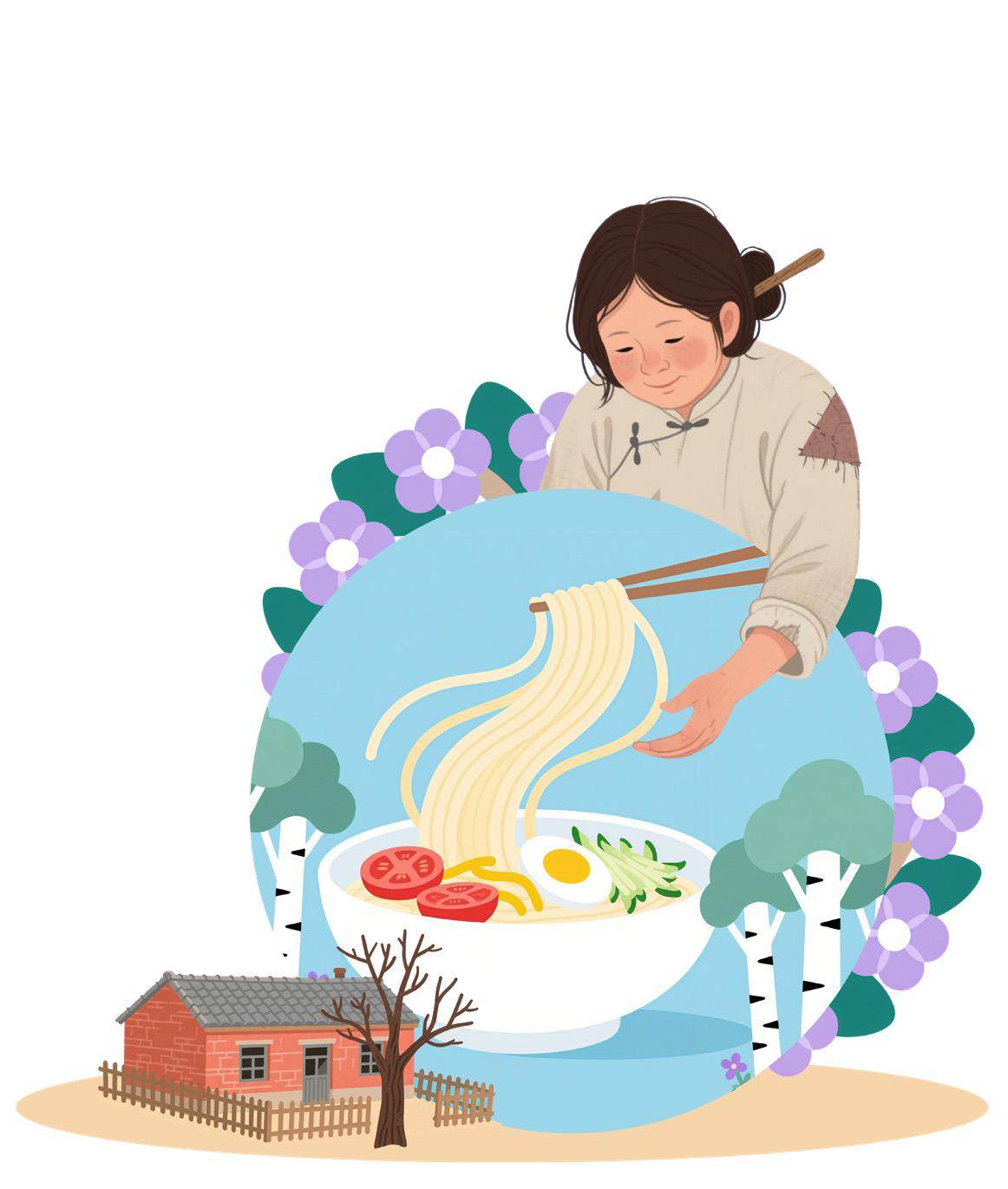 母亲端起桌上的不锈钢大碗,轻轻啜一口沁凉、酸甜又有稍许辣意的冷面汤,眉头立时舒展。她放下碗,轻轻地舒了一口气,好像也提起了一些精神。