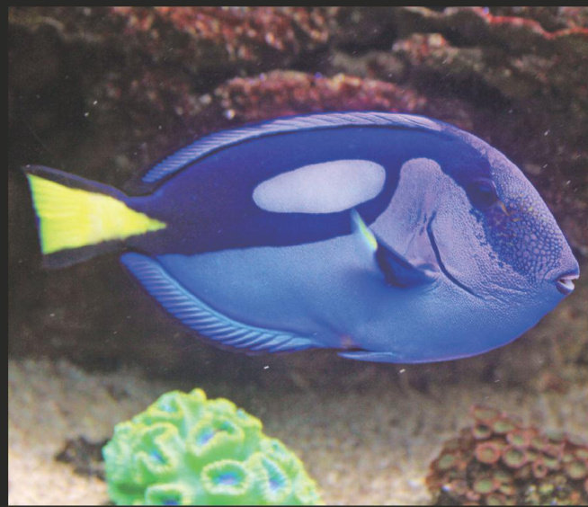 拟刺尾鲷的身上深蓝和浅蓝相间,摇摆着一条明黄色的靓丽尾鳍。它是电影《海底总动员》中多莉的原型呢。