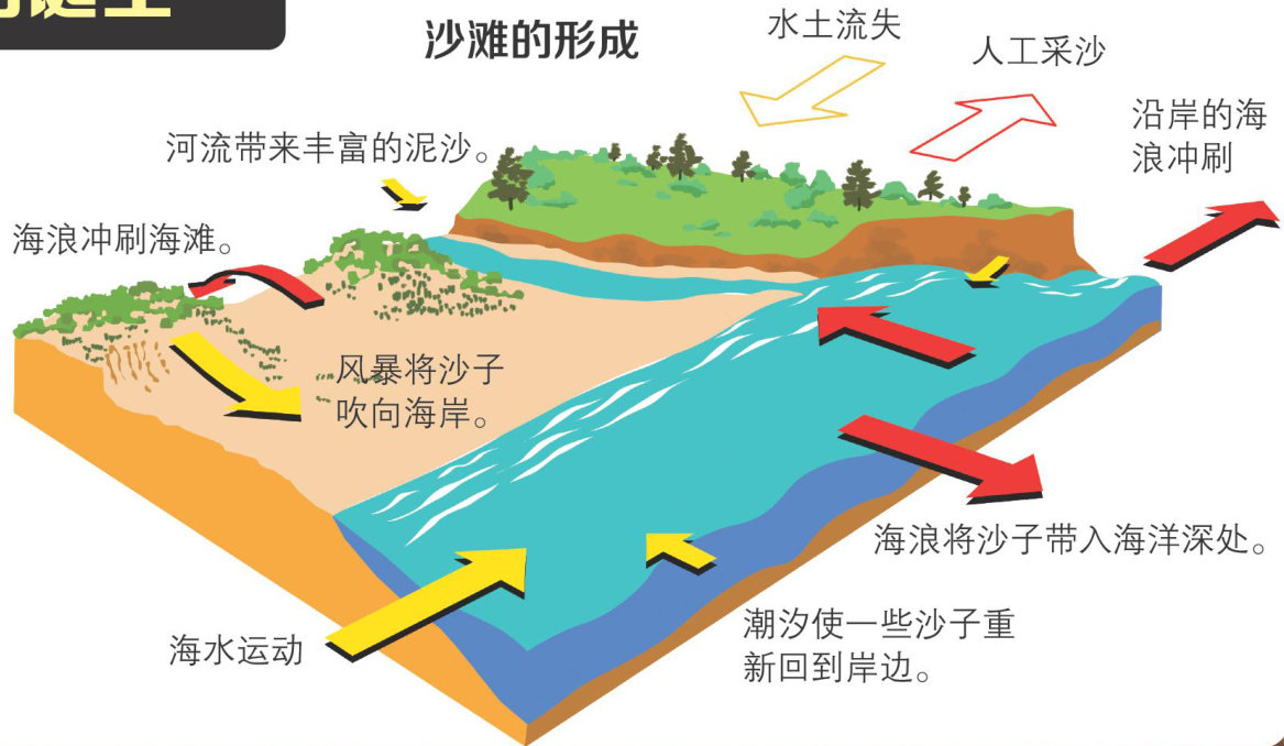 我们的生活离不开沙子。我们的住宅、干净的马路、明亮的玻璃……主要原材料都是沙子。有的人喜欢沙子,因为海滩上沙子的不仅柔软,而且还可以塑造出各种各样的有趣造型;有的人讨厌沙子,因为它们藏在米饭里会牙,掉在鞋子里会珞脚。无论你喜不喜欢沙子,它都有一个奇妙的王国,等着你去探索。