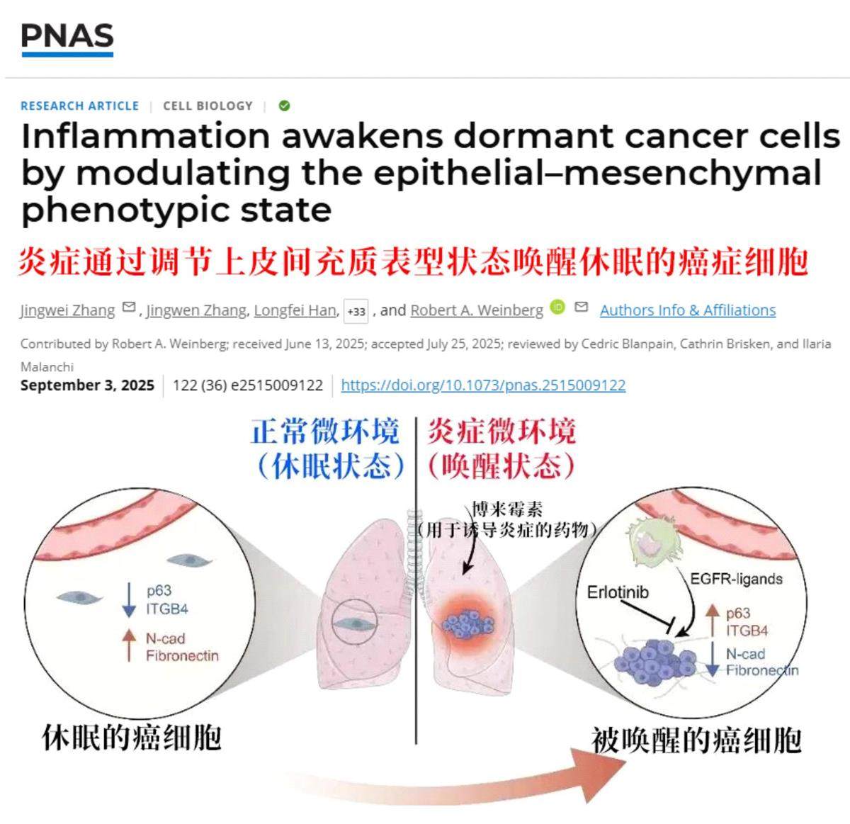 近日,中国科学院一项最新研究发现:长期炎症会“唤醒”休眠的癌细胞。
